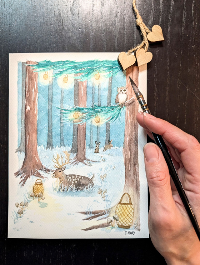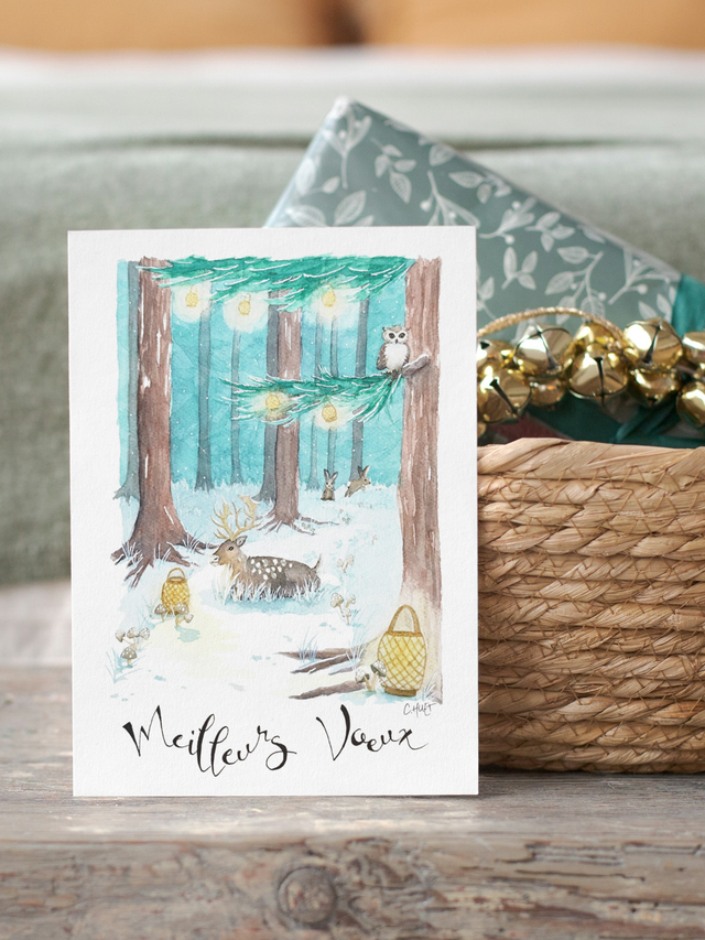 Carte Meilleurs voeux forêt enneigée, Collab Miss Suzette x Clemence Huet !