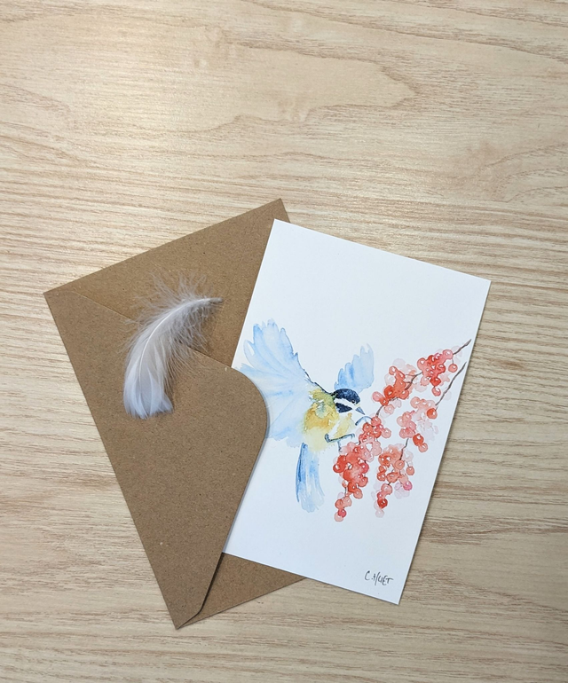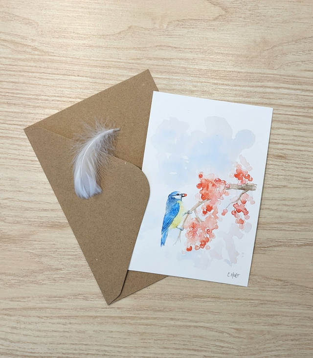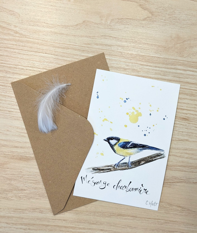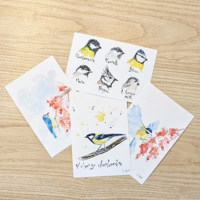 Cartes postales à l'aquarelle, mésanges divers motifs
