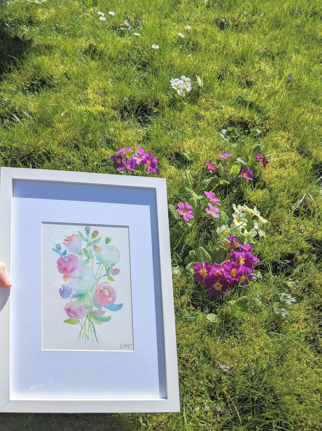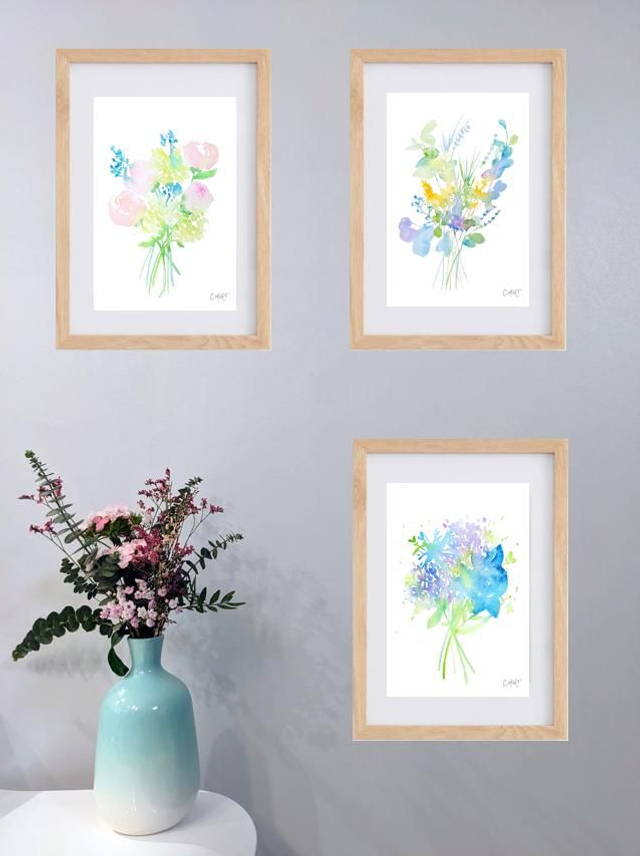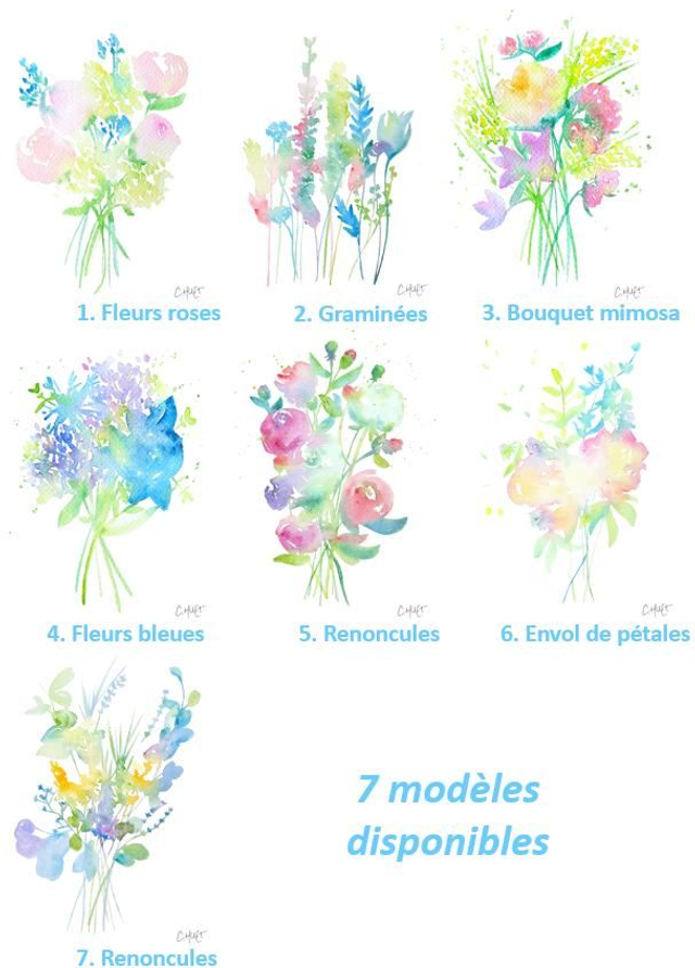 Mini-tableaux issus de mes créations originales, représentant divers assortiments de fleurs, et pas que des bleues ;)
