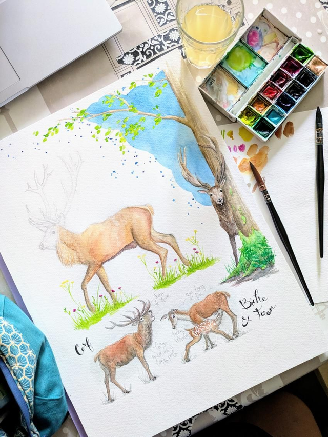 Amoureux de nature et de faune locale, cette planche naturaliste de cerfs est faite pour vous !