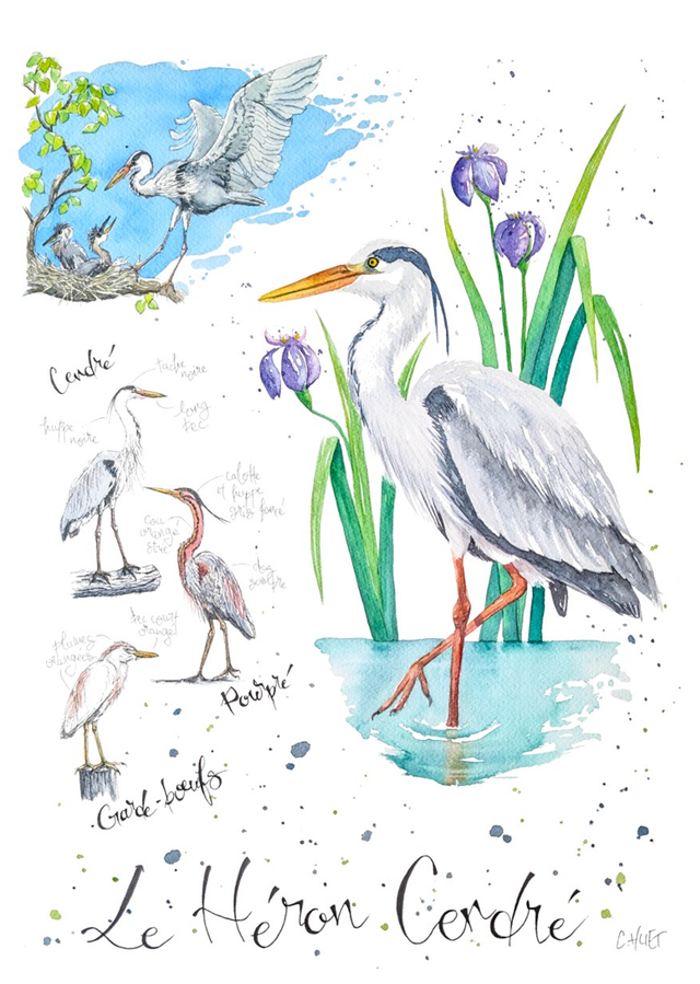 Amoureux de nature et de faune locale, cette planche naturaliste de hérons est faite pour vous !