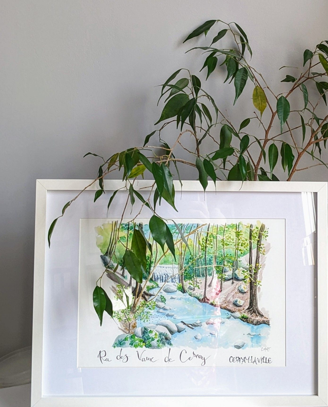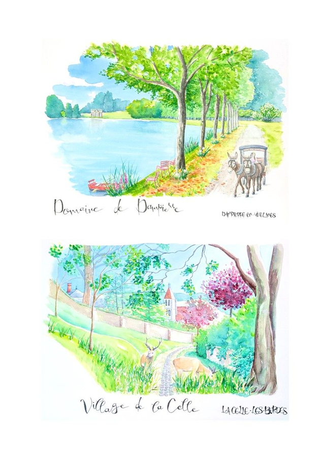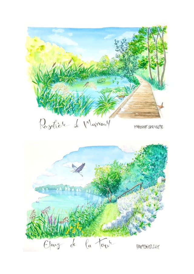 Reproduction A4 des paysages naturels de la Vallée de Chevreuse, peints à l'aquarelle tel un carnet de voyage local et exposés fin 2023 dans la vallée.