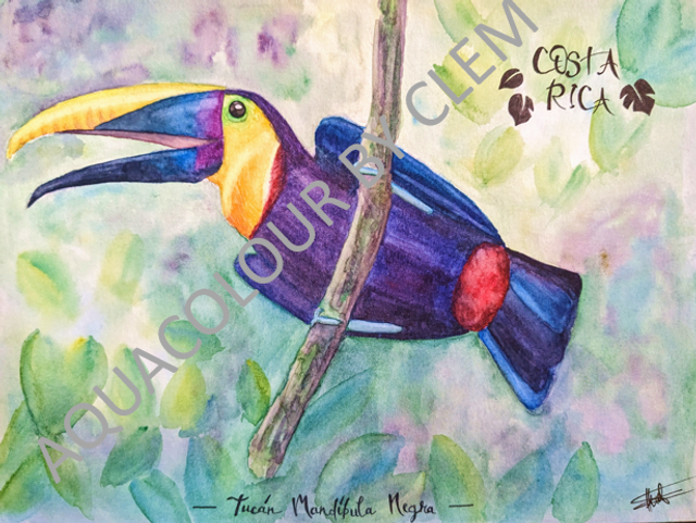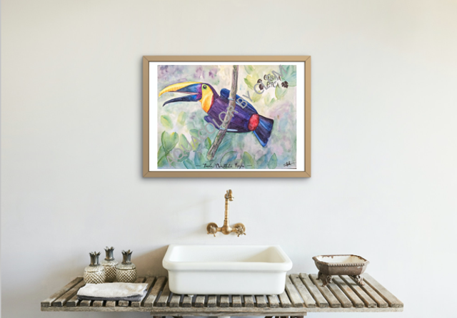Tableau à l'aquarelle Toucan du Costa Rica A4 environ