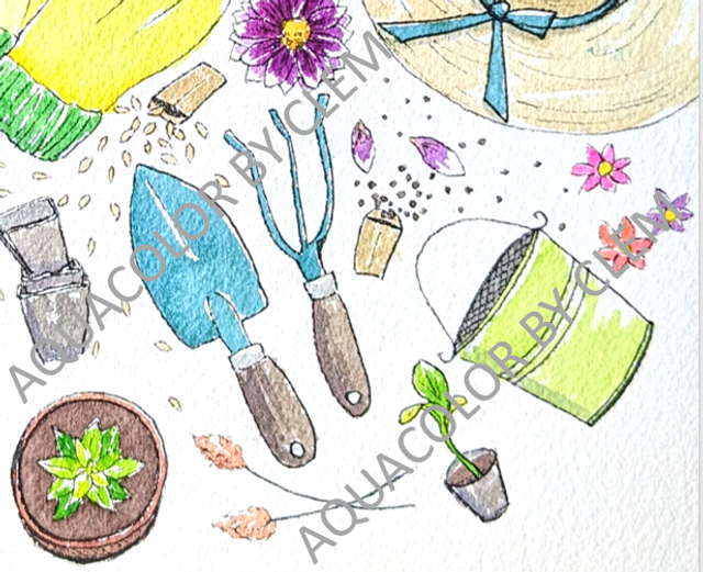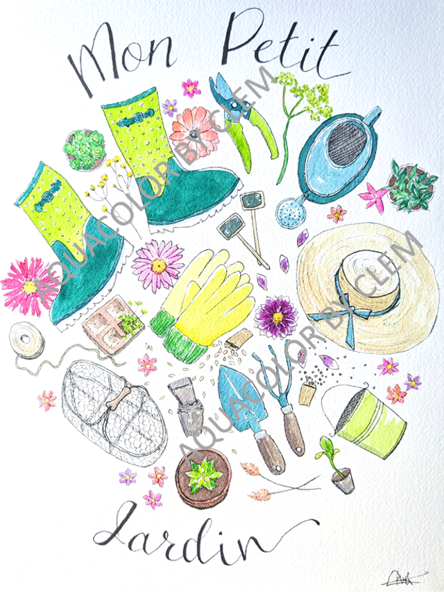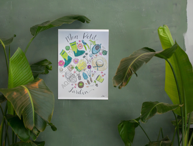 Affiche originale Mon Petit Jardin à l'aquarelle et fineliner, A4 environ