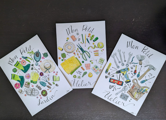 Modèle 100% personnalisé motif + inscription disponible sur commande (rubrique Me contacter en bas de page) : "Le petit jardin d'Hervé", "L'atelier couture d'Emilie", L'atelier peinture de Nathalie", "Le coin lecture de Philou"...