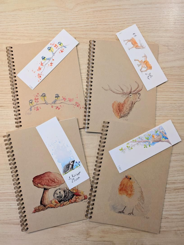Carnet illustrés de 4 motifs différents et tout aussi craquants : le hérisson sous son champignon, le cerf majestueux, les mésanges alignées sur leur branche, le rouge-gorge mignon.