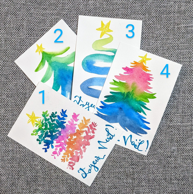 Carte aquarelle Sapins colorés Joyeux Noël