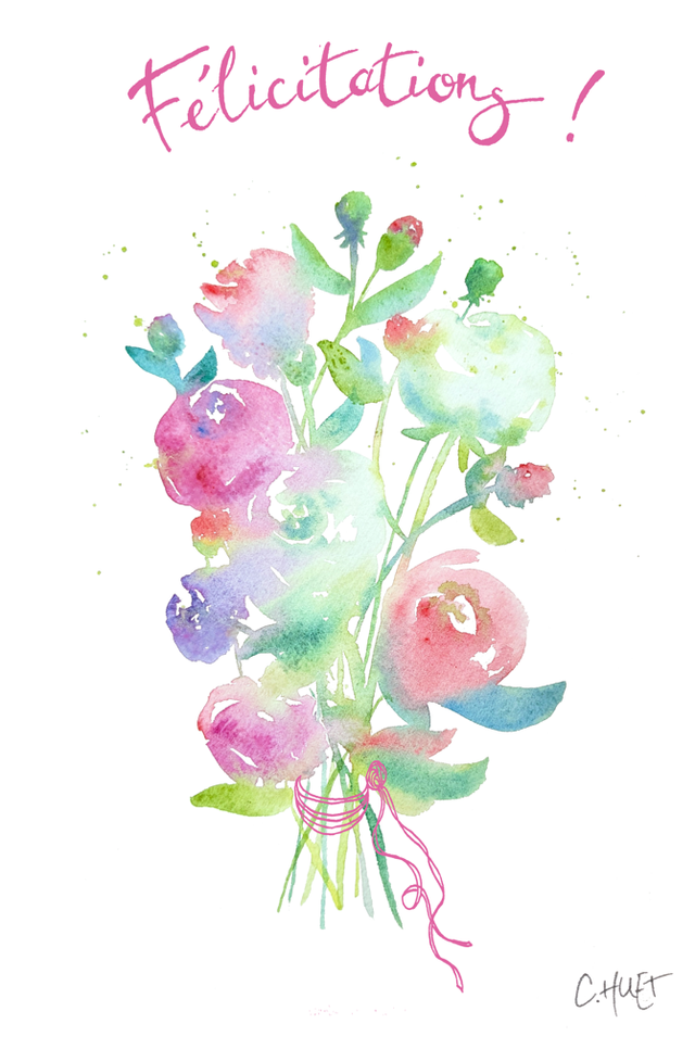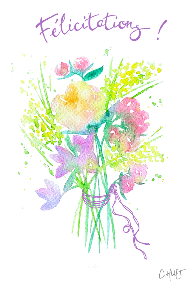 Carte félicitations bouquets de fleurs, diverses couleurs