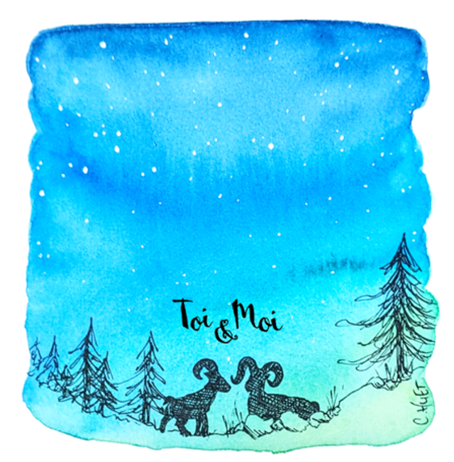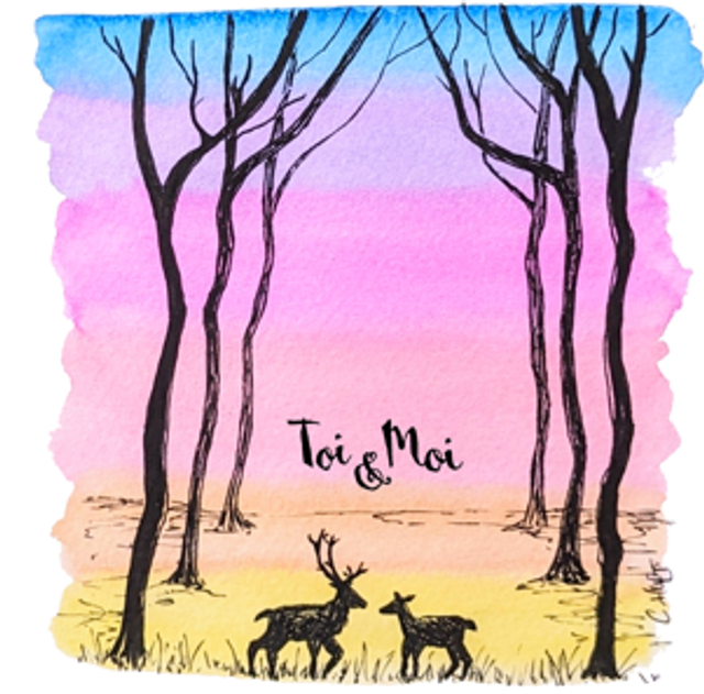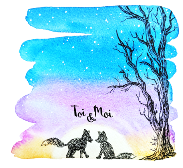 Aquarelle originale imaginée et peinte par mes soins puis imprimée en haute qualité, divers motifs d'animaux amoureux sur un fond de ciel dégradé.