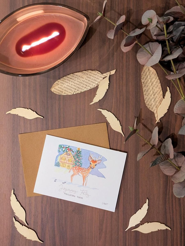 Cartes de vœux originales et artisanales, illustrations imaginées et peintes à l'aquarelle avec amour en France, pour transmettre l'amour de la planète et de ses petits occupants.