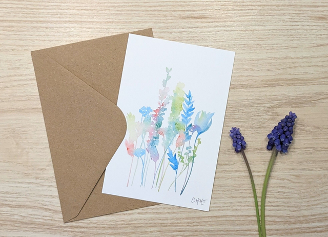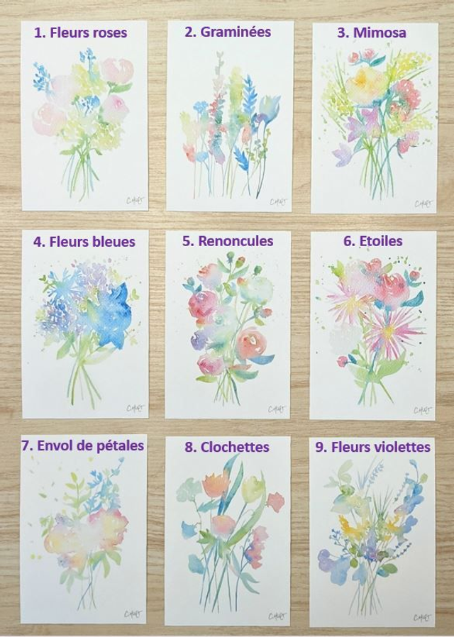 Cartes postales à l'aquarelle, fleurs multicolores divers motifs poétiques