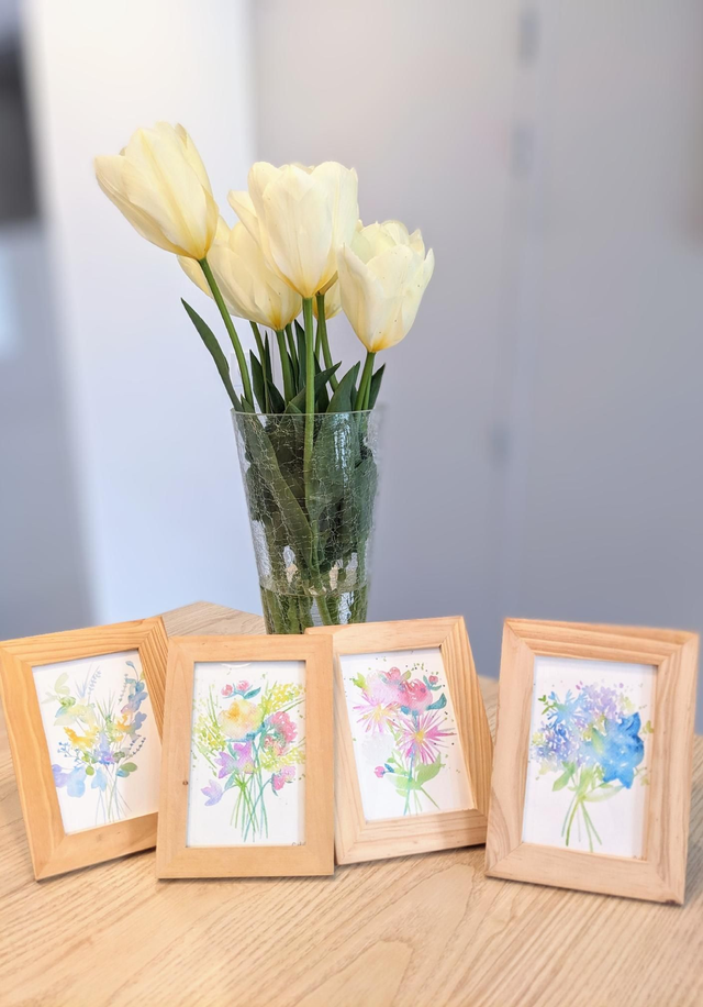 Elles peuvent ensuite être accrochées seules ou en collection de mini-tableaux pour égayer les cœurs !