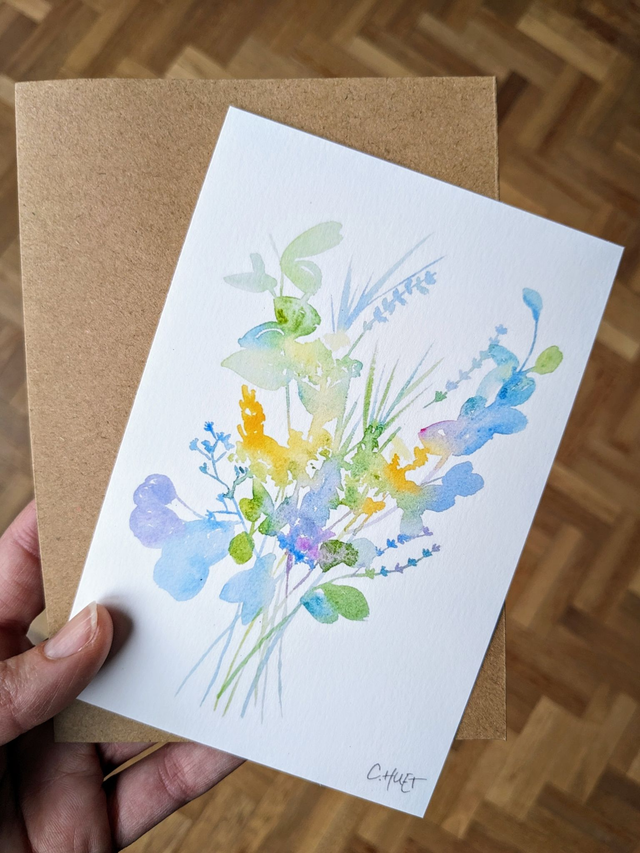 Cartes issues de mes créations originales, représentant divers assortiments de fleurs, et pas que des bleues ;)