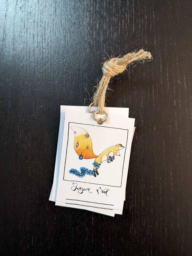 Etiquettes pour cadeaux de Noël avec renards malins, issues d'aquarelles originales peintes par mes soins, pour offrir à vos proches sur tous vos cadeaux ! L'article comporte 4 étiquettes différentes et leurs cordelettes, ne reste qu'à écrire le nom du destinataire.
