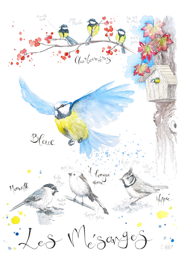 Amoureux de nature, de faune locale et de mignonnerie, cette planche naturaliste de mésanges est faite pour vous !