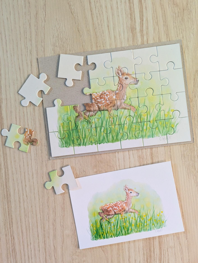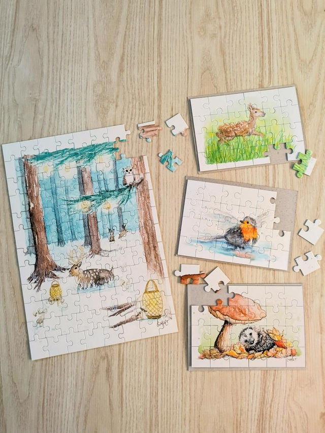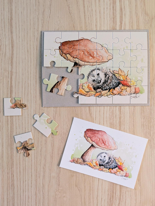 C'est maintenant possible grâce à ces puzzles représentant mes illustrations nature à l'aquarelle ! Hérisson au champignon, petit faon dans les herbes, ou rouge-gorge dans une flaque, la mignonnerie est sur tous les modèles :)