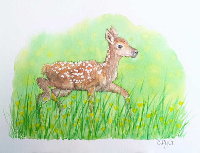Tableau faon de cerf dans la prairie, original à l'aquarelle