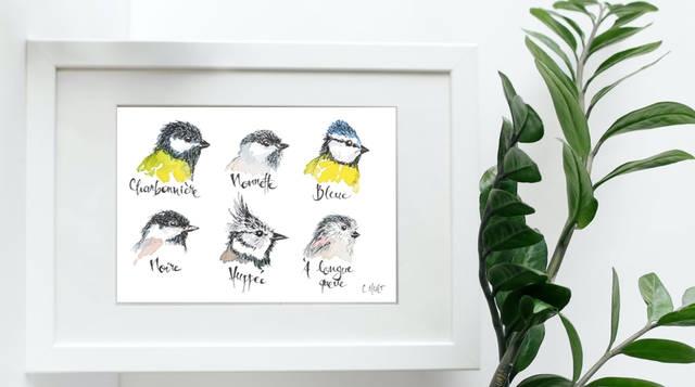 A accrocher seul ou en collection, accompagné d'autres tableaux de mésanges ou oiseaux variés, disponibles dans la boutique !