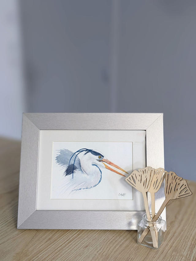 A accrocher seul ou en collection, accompagné d'autres tableaux de hérons ou oiseaux variés, disponibles dans la boutique !